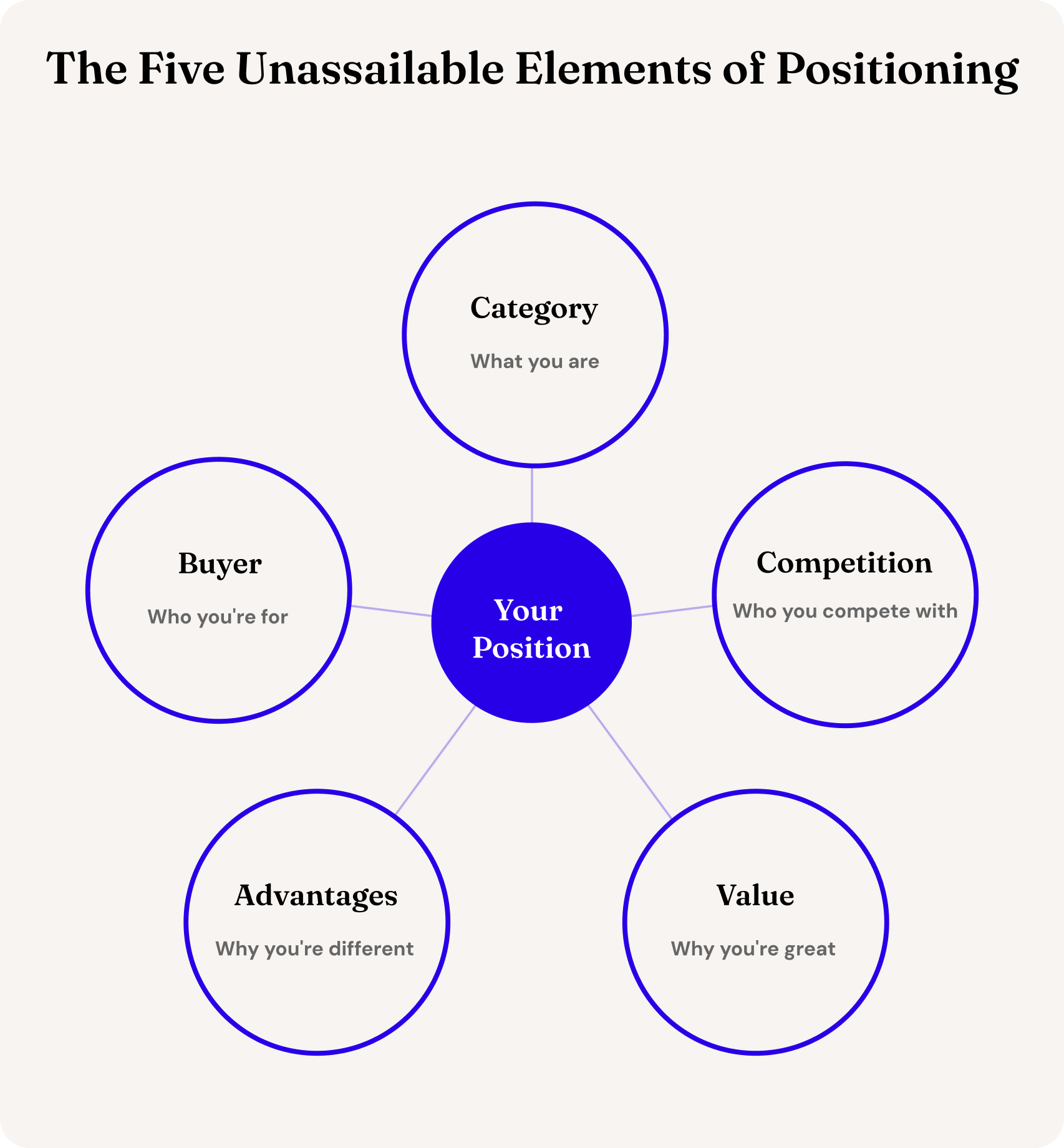 There’s a lot of competition out there to “fix” positioning. To deliver the new framework, process, or tool that blows open a whole new way of thinking about it. Positioning is straightforward. It’s the process of teaching the market what you are, who you're for, who you compete with, why you're different, and why you're great. You can't change it any more than you can change the molecular structure of water.